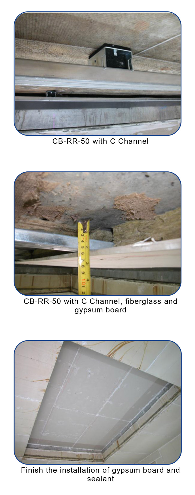 CB-RR-50 are specifically designed for dry type ceiling of gypsum board in wire supported or suspended systems to decouple the structural noise transmission.